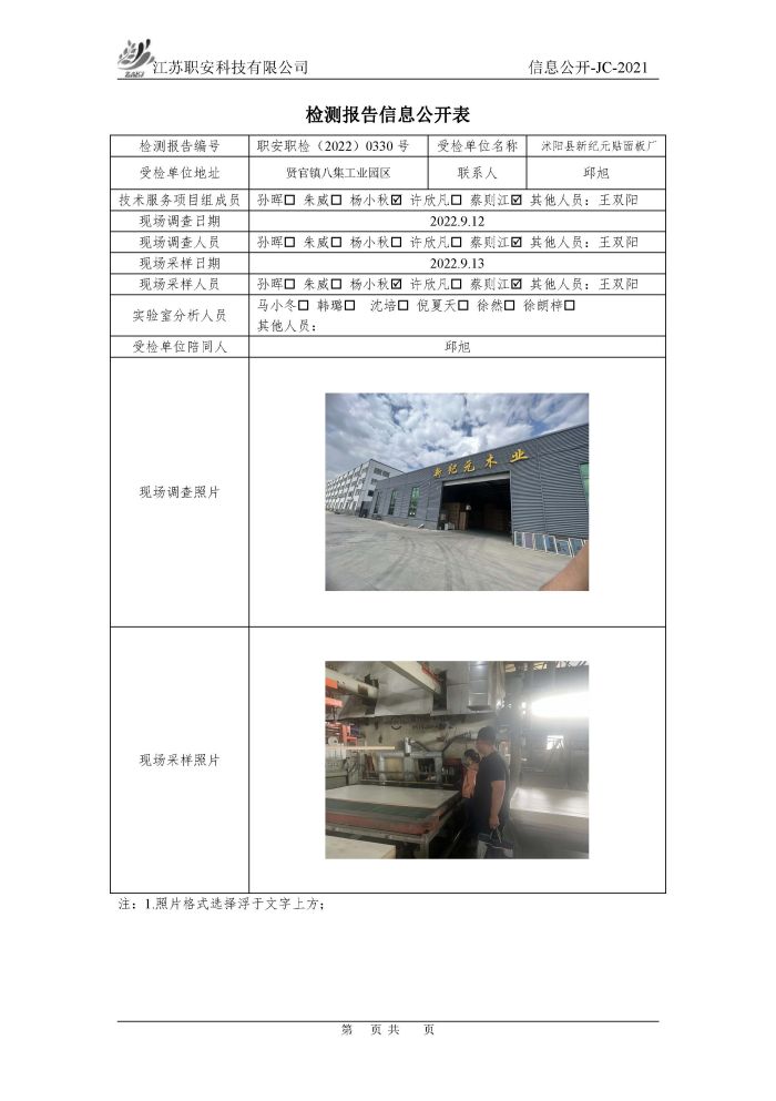 檢測報告公示