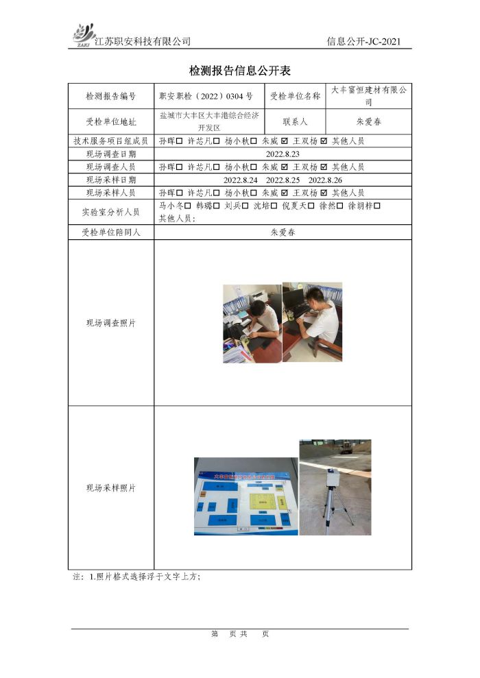 檢測報告公示