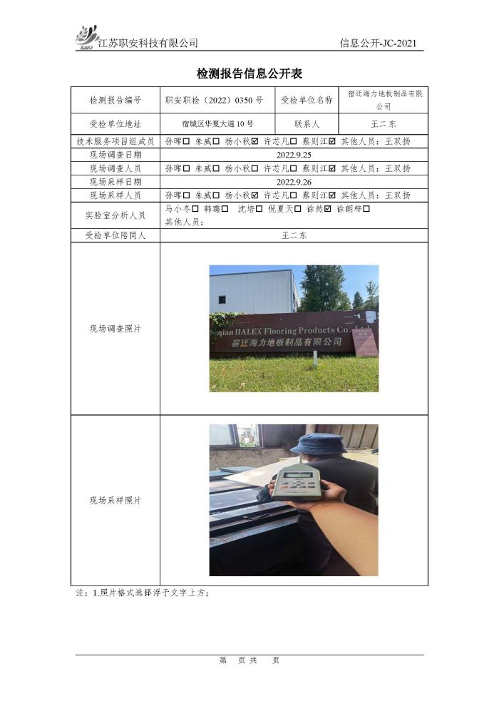 檢測報告公示