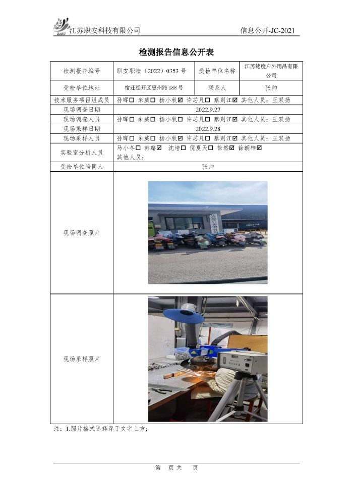 檢測報告公示