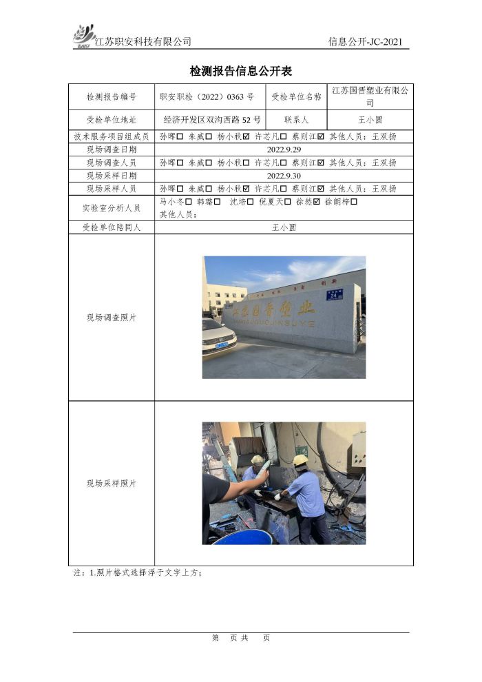 檢測報告公示