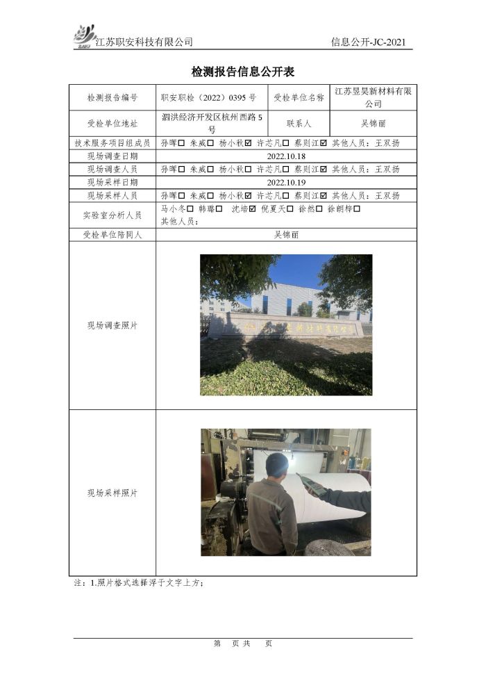 檢測報告公示