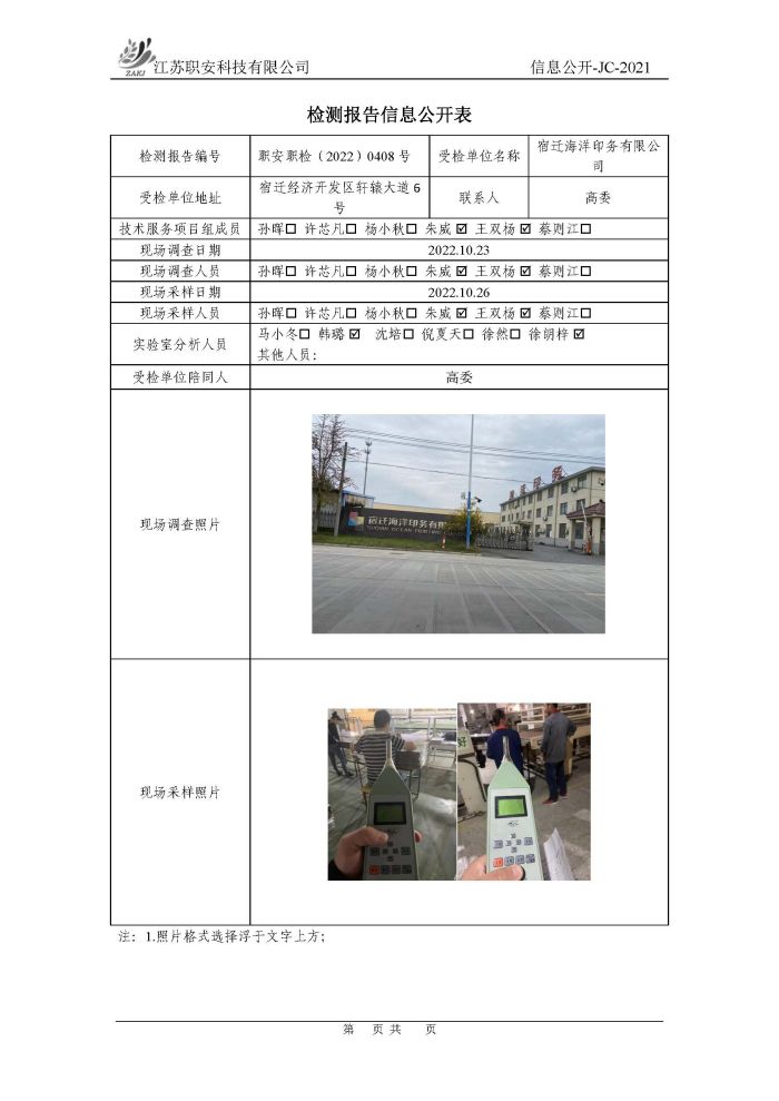 檢測報告公示