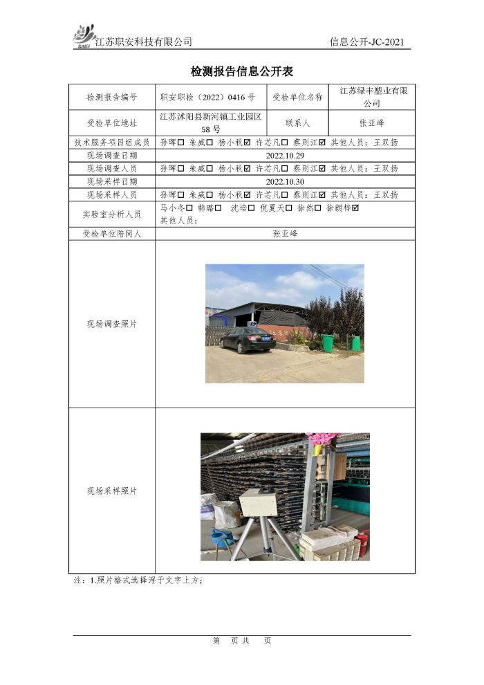 檢測報告公示