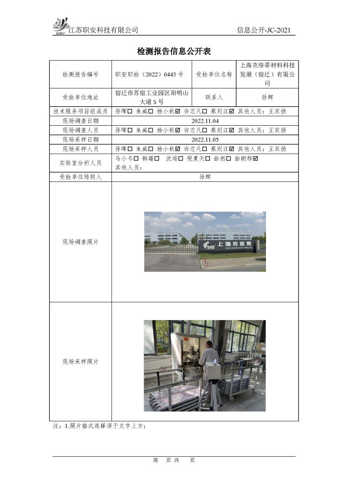 檢測報告公示