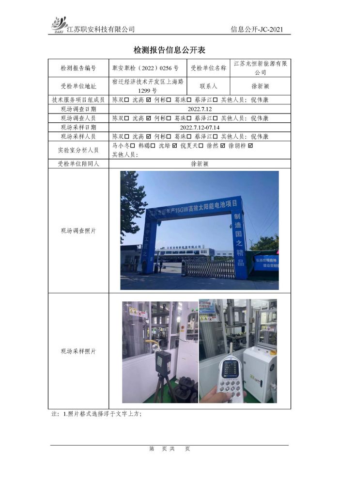 檢測報告公示