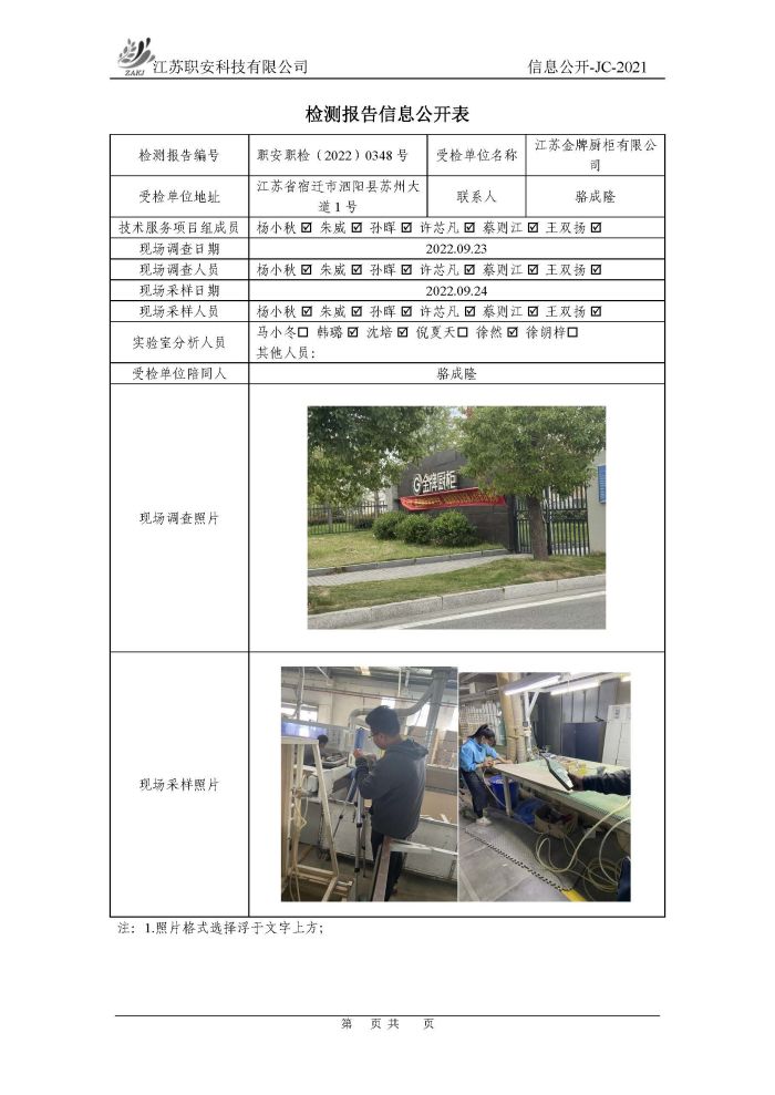 檢測報告公示