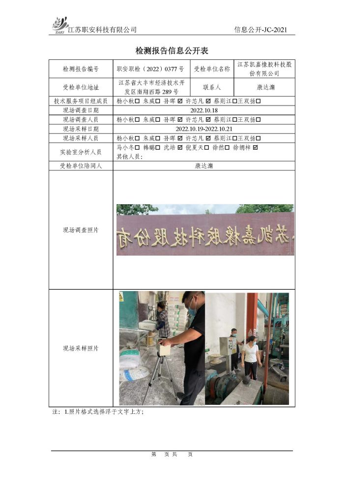 檢測報告公示
