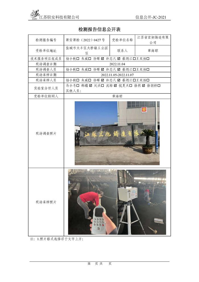 檢測報告公示