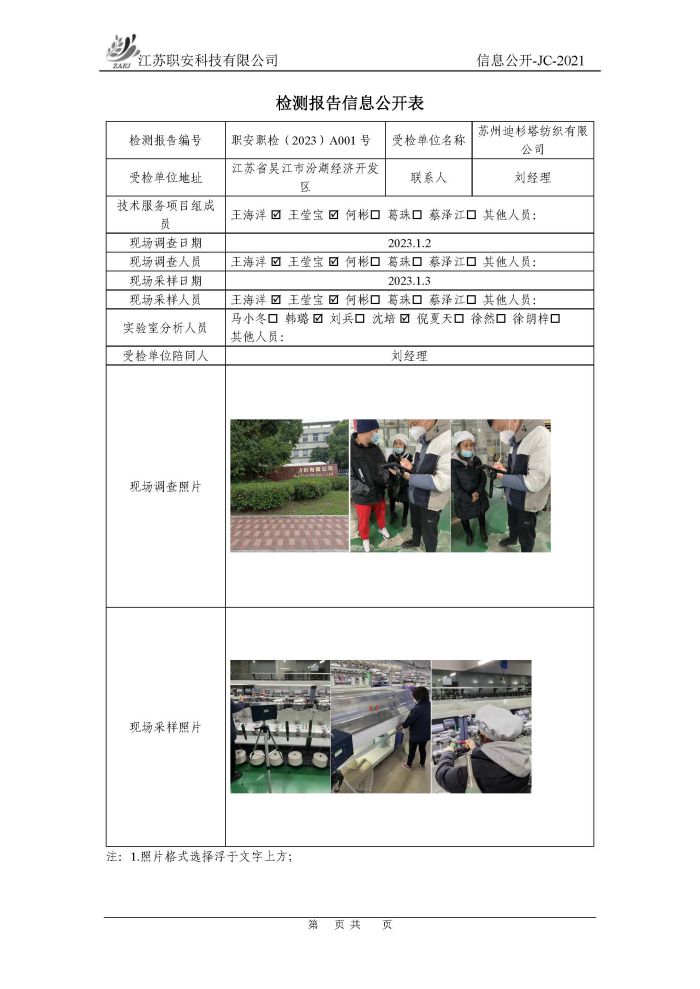 檢測報告公示