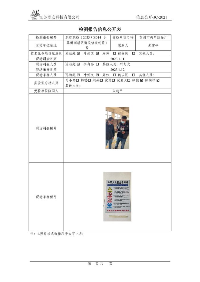 檢測報告公示