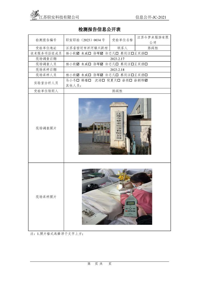 檢測報告公示