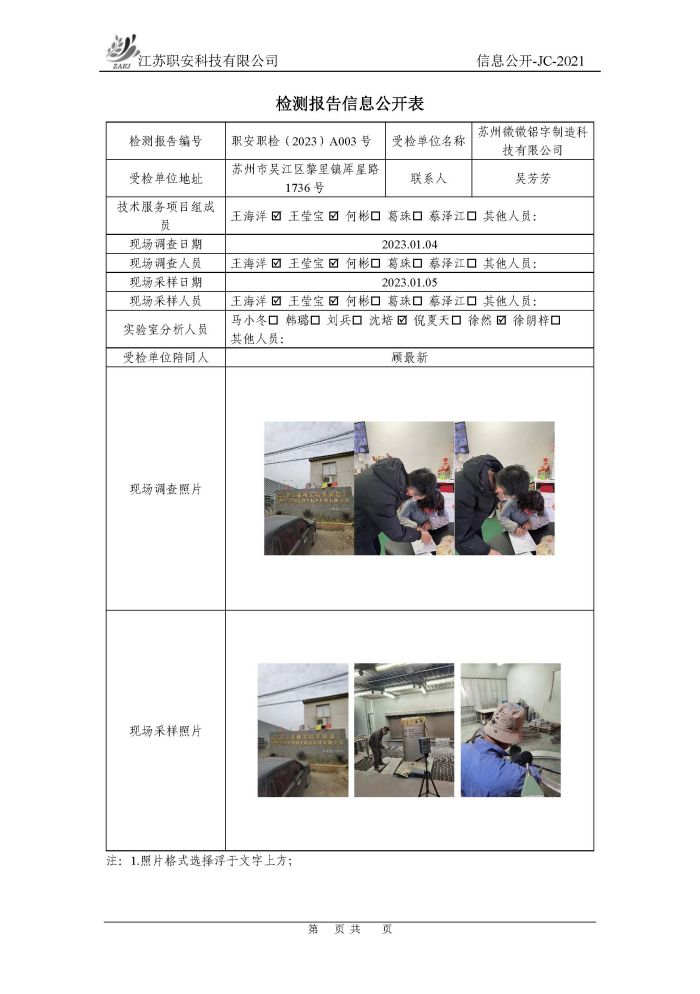 檢測報告公示