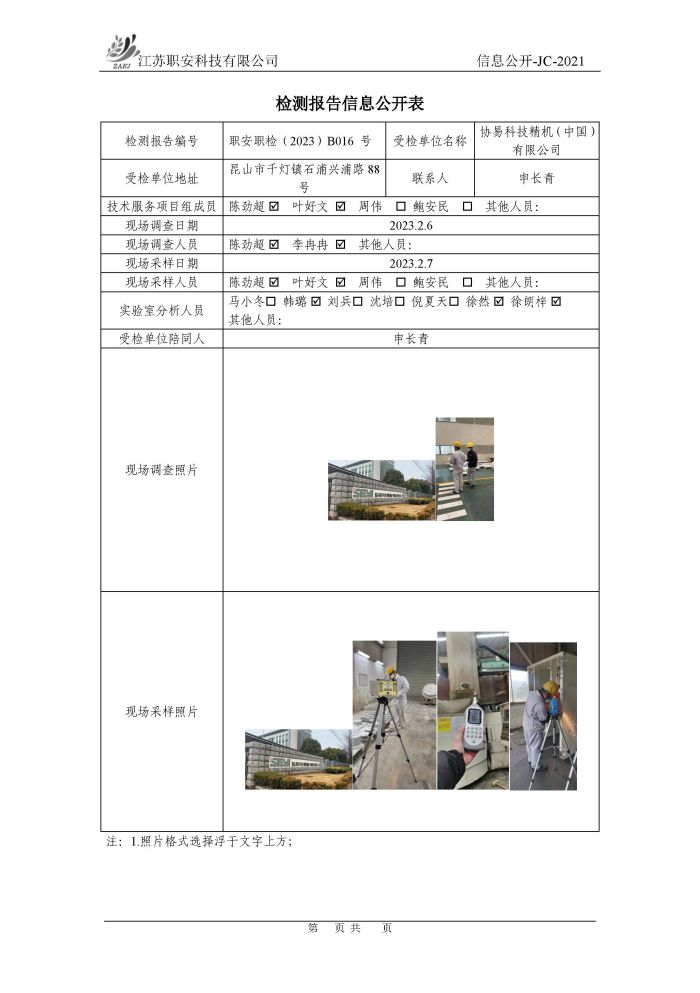 檢測報告公示