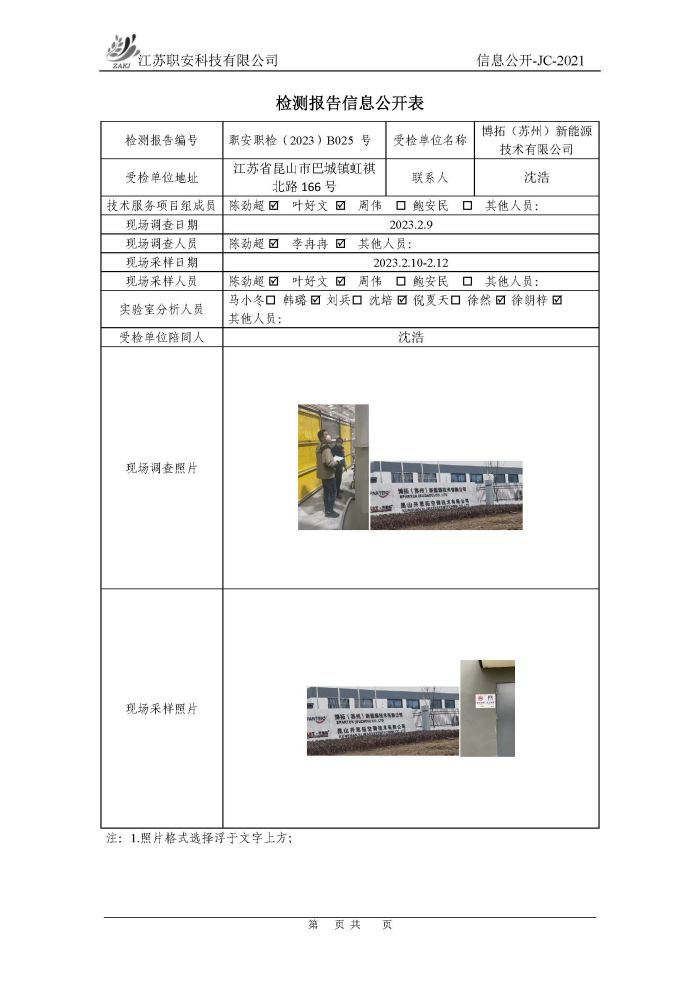 檢測報告公示