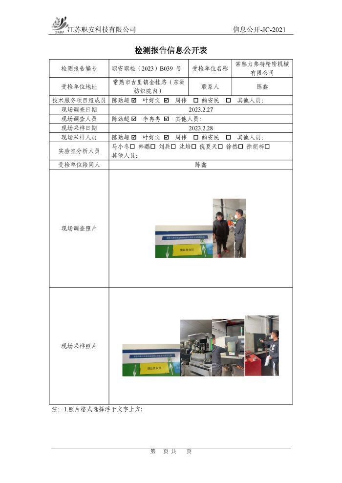 檢測報告公示