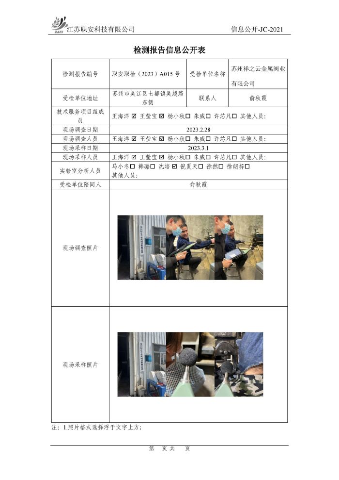 檢測報告公示