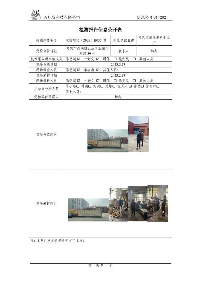 檢測報告公示