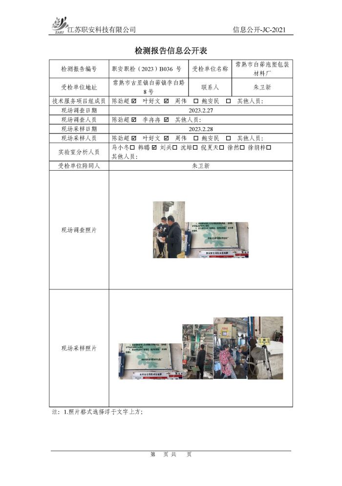 檢測報告公示
