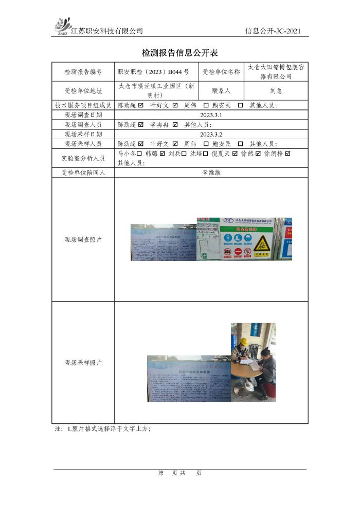 檢測報告公示