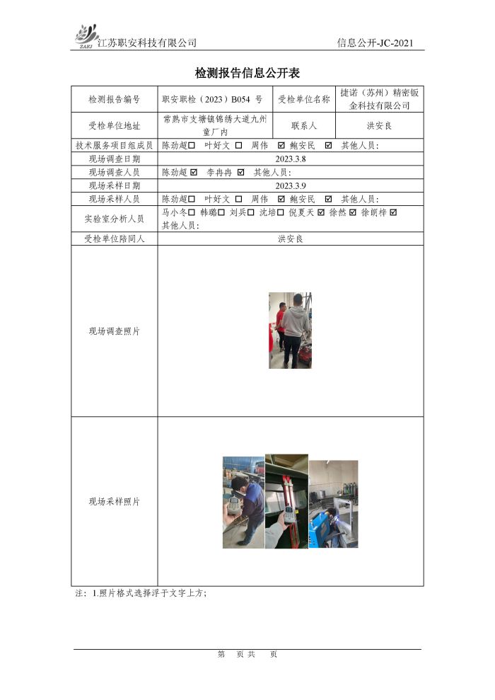 檢測報告公示