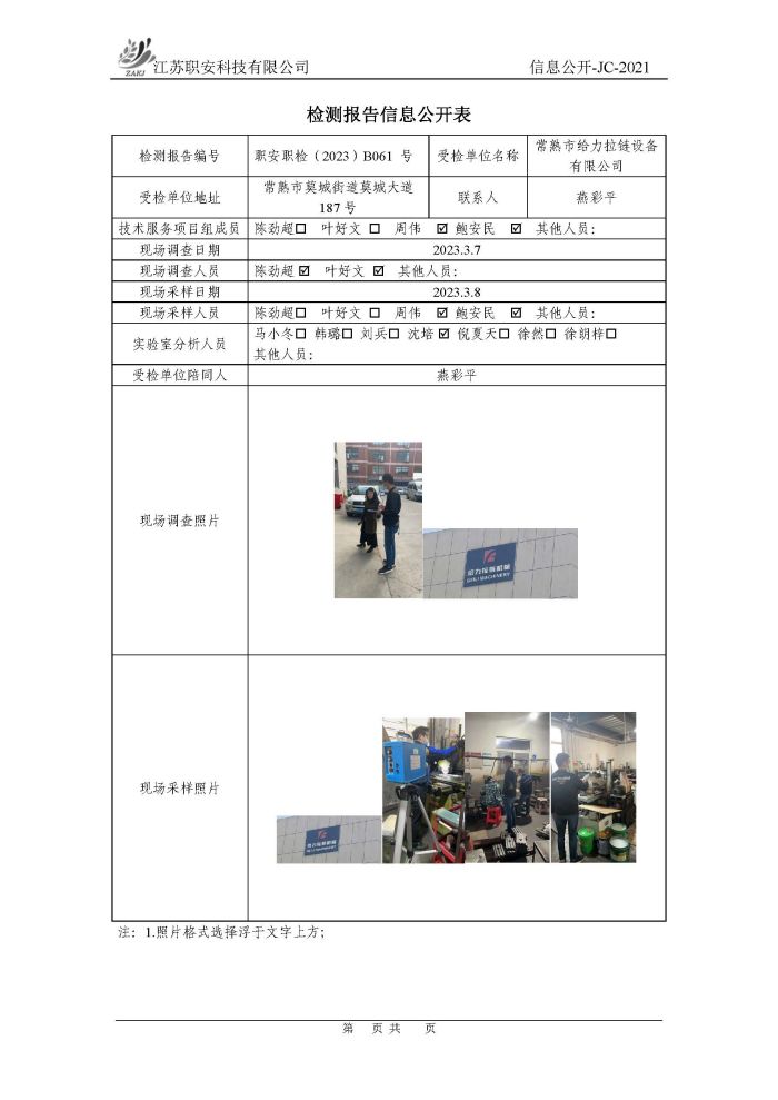 檢測報告公示