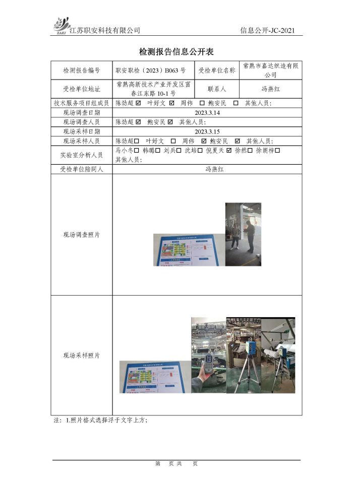 檢測報告公示
