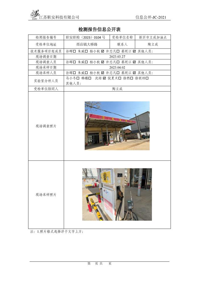 檢測報告公示