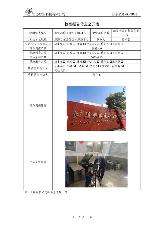 檢測報告公示