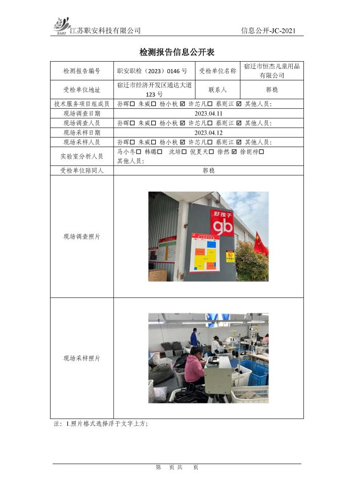 檢測報告公示