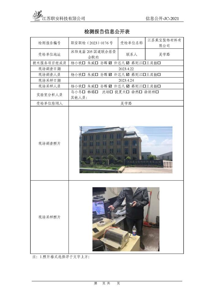 檢測報告公示