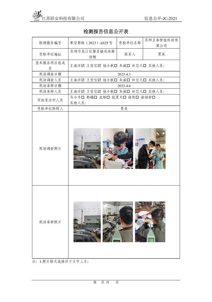 檢測報告公示
