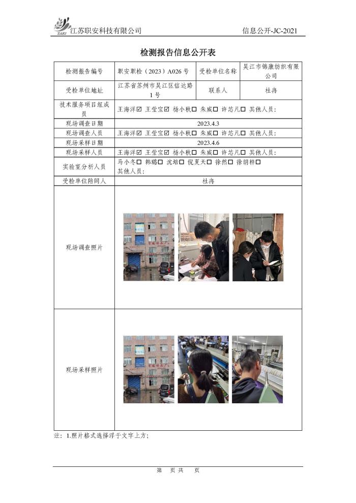 檢測報告公示