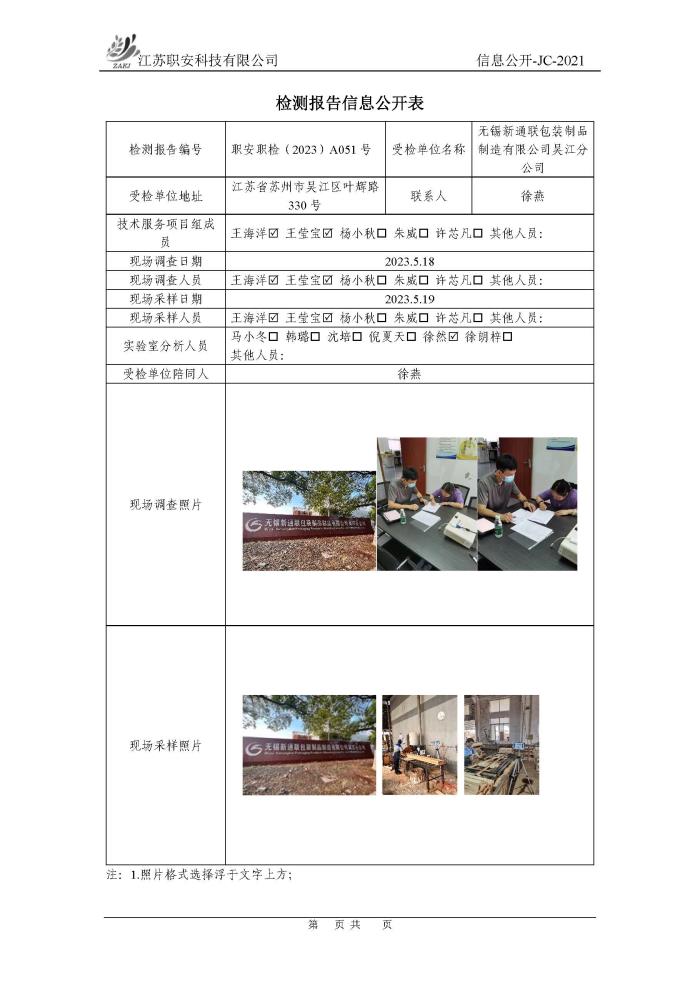 檢測報告公示