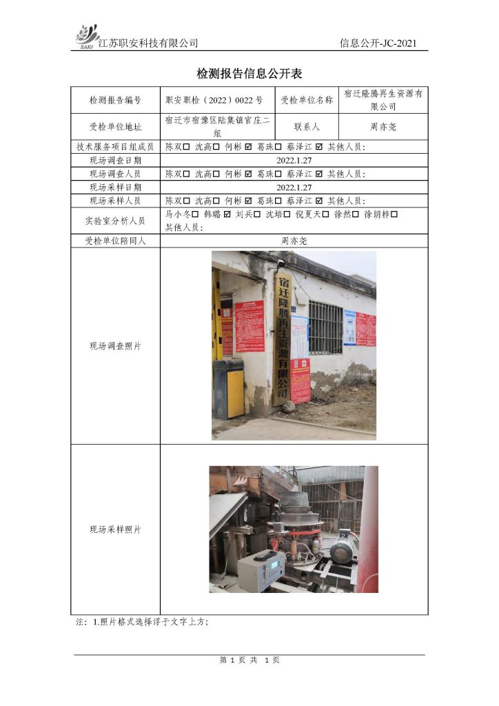 檢測報告公示