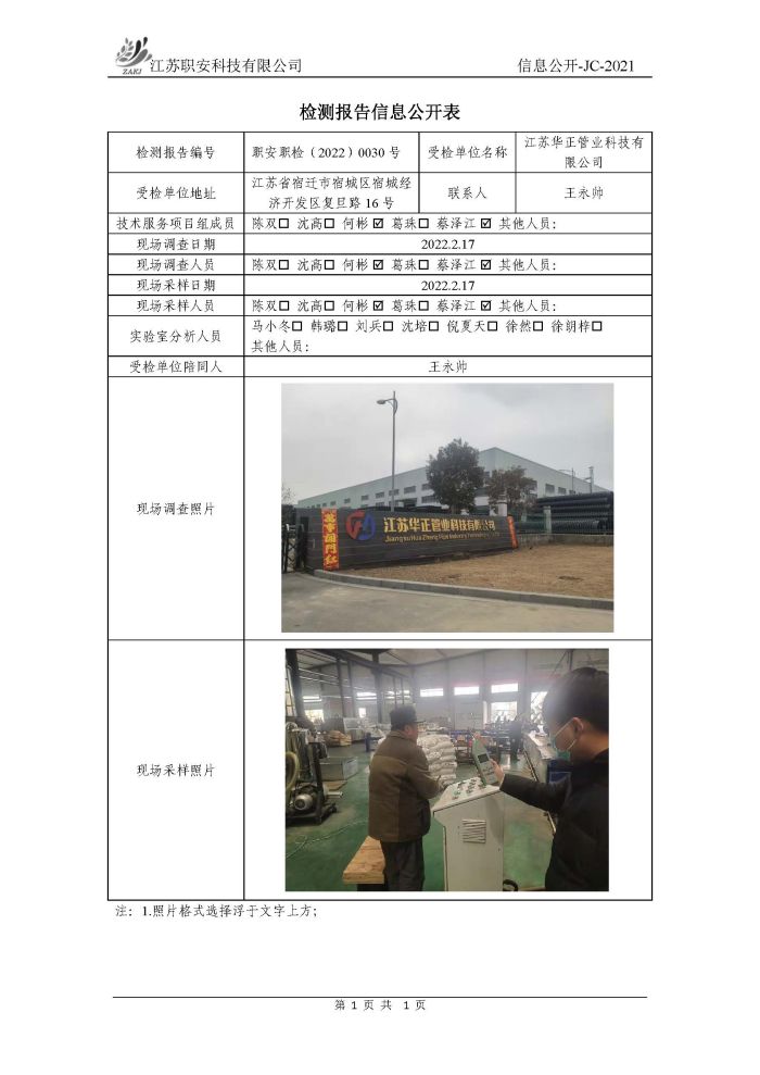 檢測報告公示