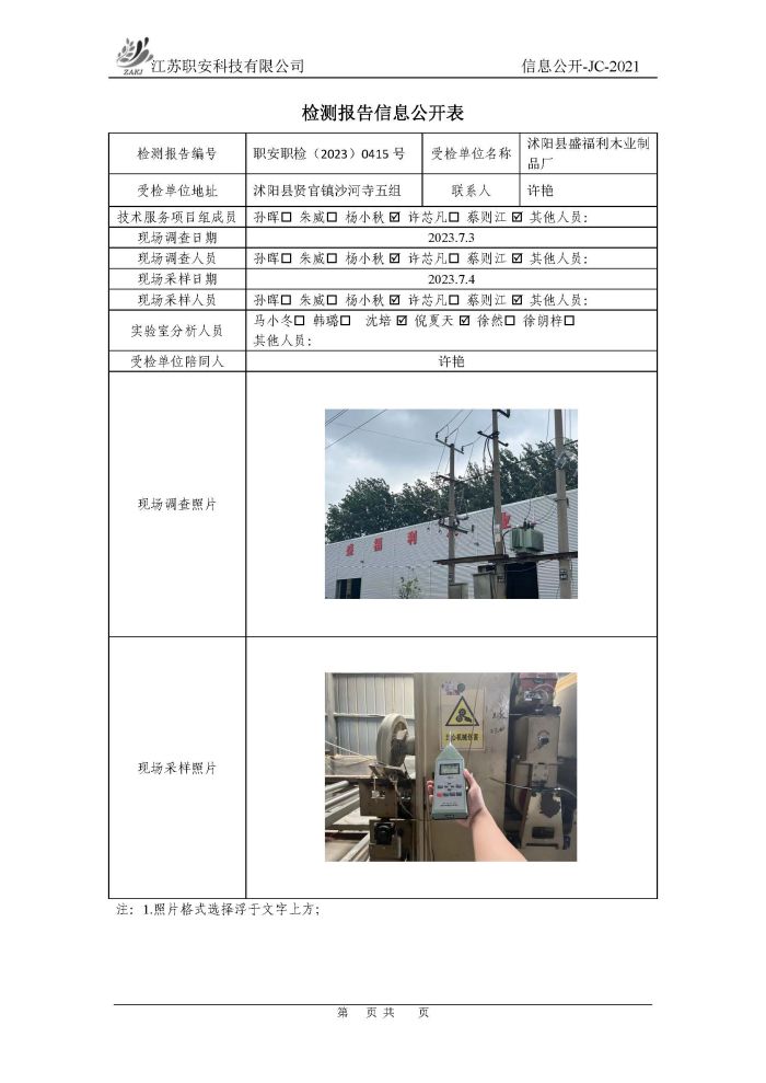 檢測報告公示