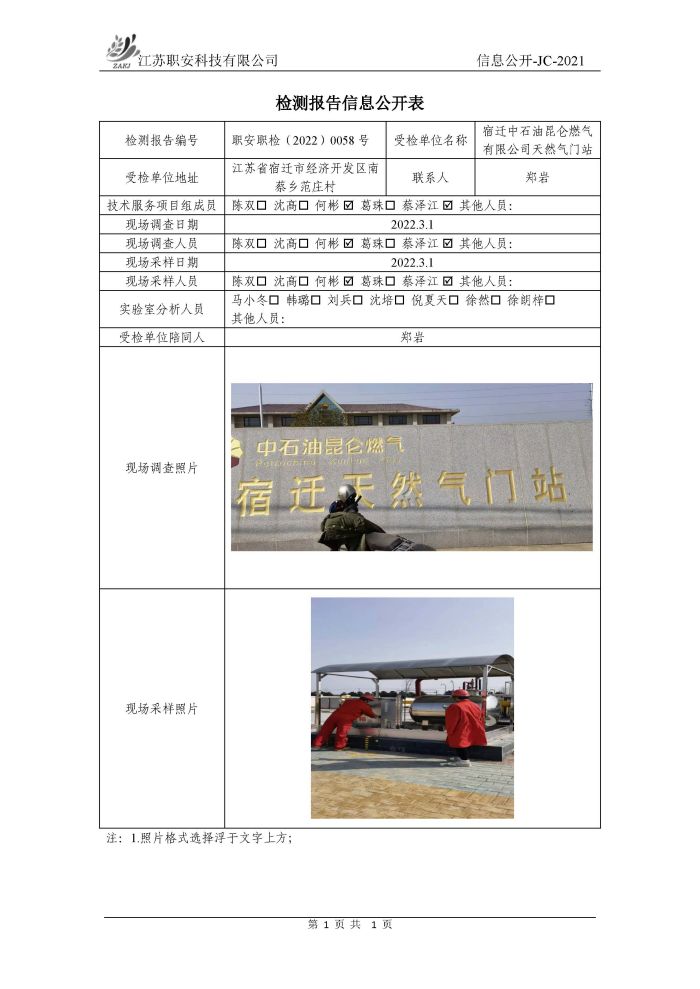 檢測報告公示