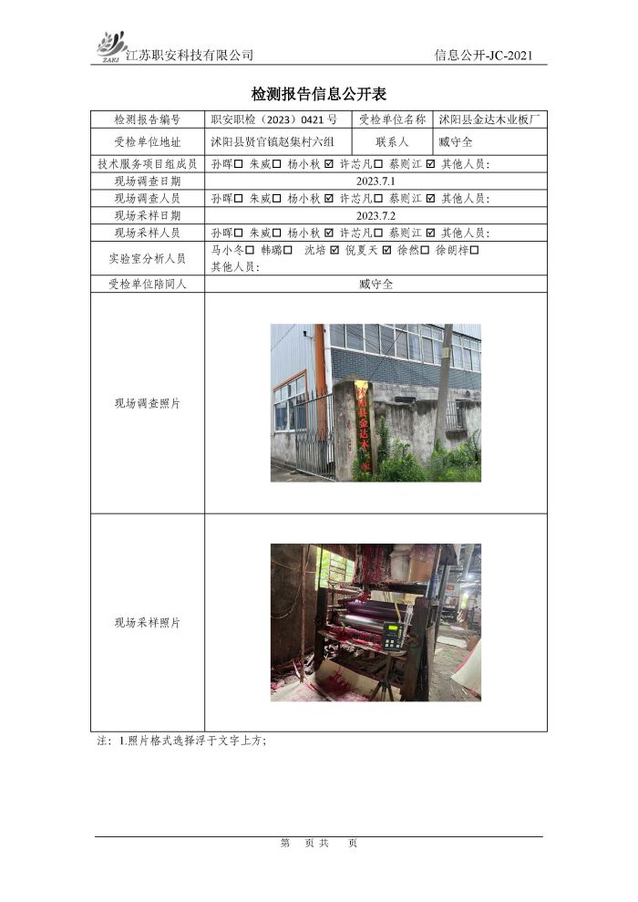 檢測報告公示