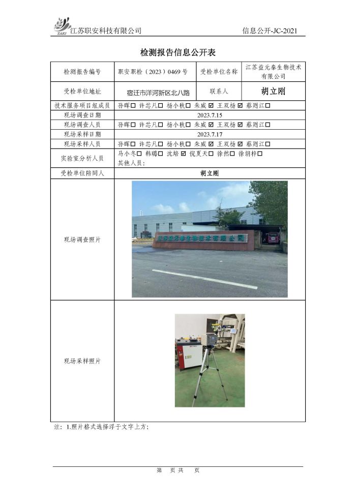 檢測報告公示