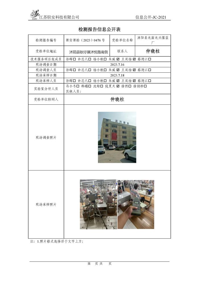 檢測報告公示