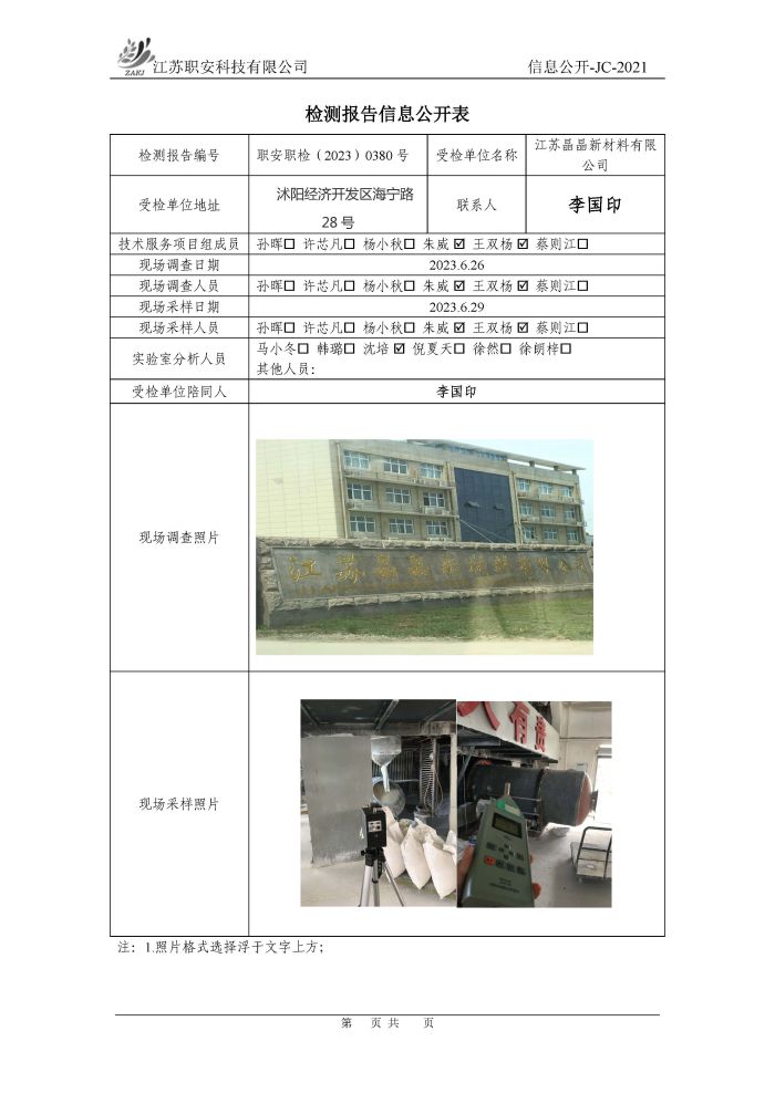 檢測報告公示