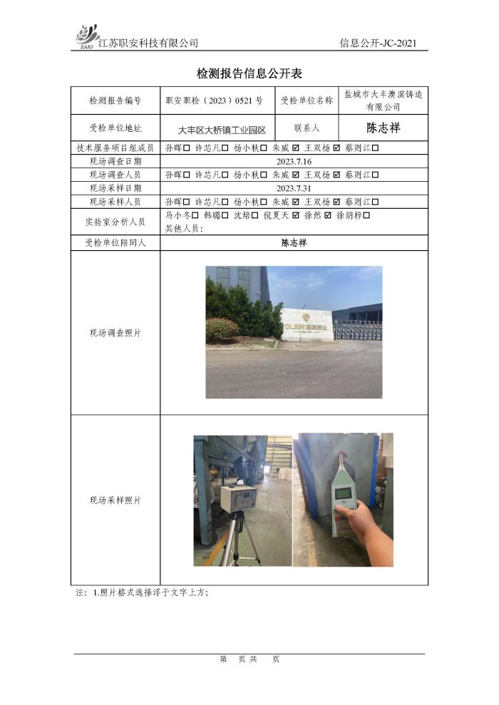 檢測報告公示