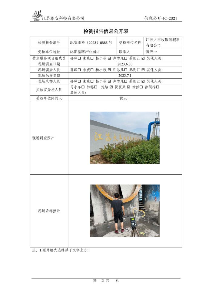 檢測報告公示