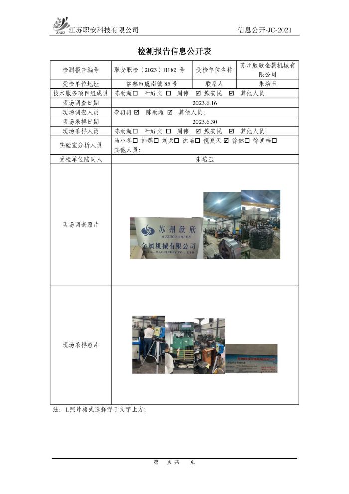 檢測報告公示