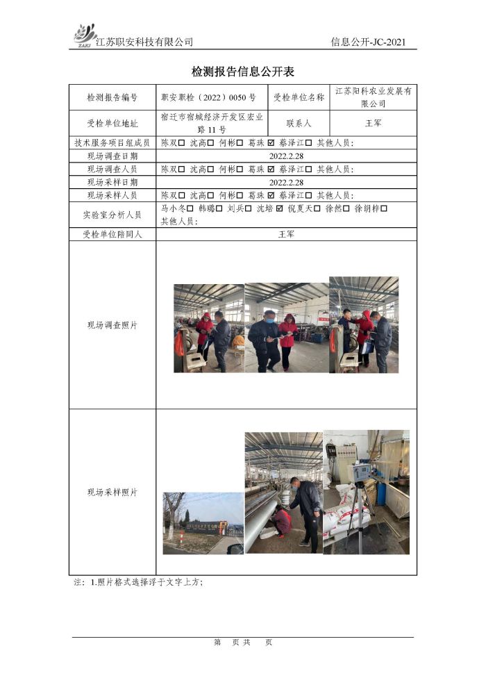 檢測報告公示