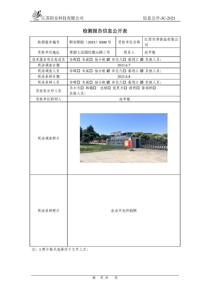 檢測報告公示