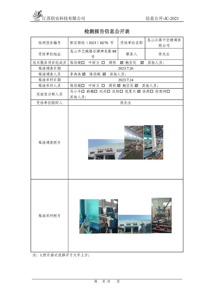 檢測報告公示