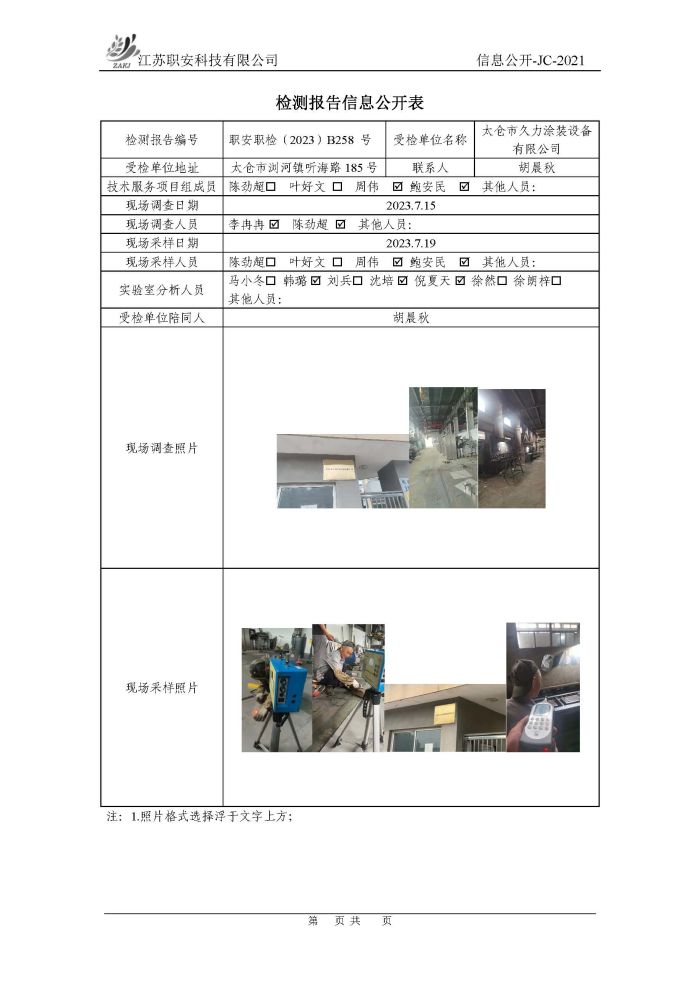 檢測報告公示