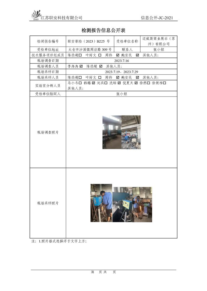 檢測報告公示